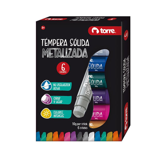 TEMPERA SOLIDA METALIZADA 6 COLORES TORRE